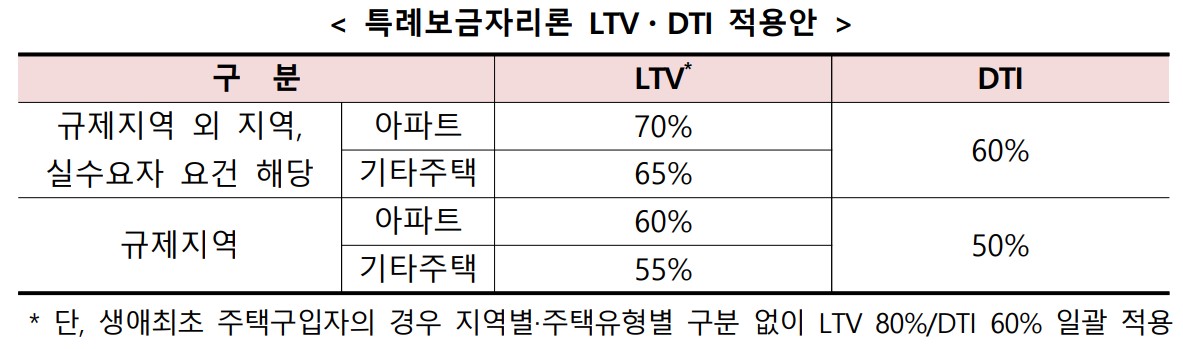 주택가격이 9억 원 이하의 주택이 대상으로 기존의 보금자리론과는 달리 차주의 소득제한이 적용되지 않습니다. 다만 무주택자의 구입용도와 1 주택자의 상환보전용도로 신청이 가능하며, 대체취득을 위한 일시적 2 주택자의 경우에는 기존 주택을 2년 내에 처분하는 조건이면 신청할 수 있습니다. 신청금은 주택구입, 기존 대출상환, 임차보증금 반환 등 세 가지 용도로 사용이 가능합니다. 대출한도는 최대 5억 원 이내이며 LTV 최대 70%, DTI 최대 60% 내에서만 대출이 취급됩니다.