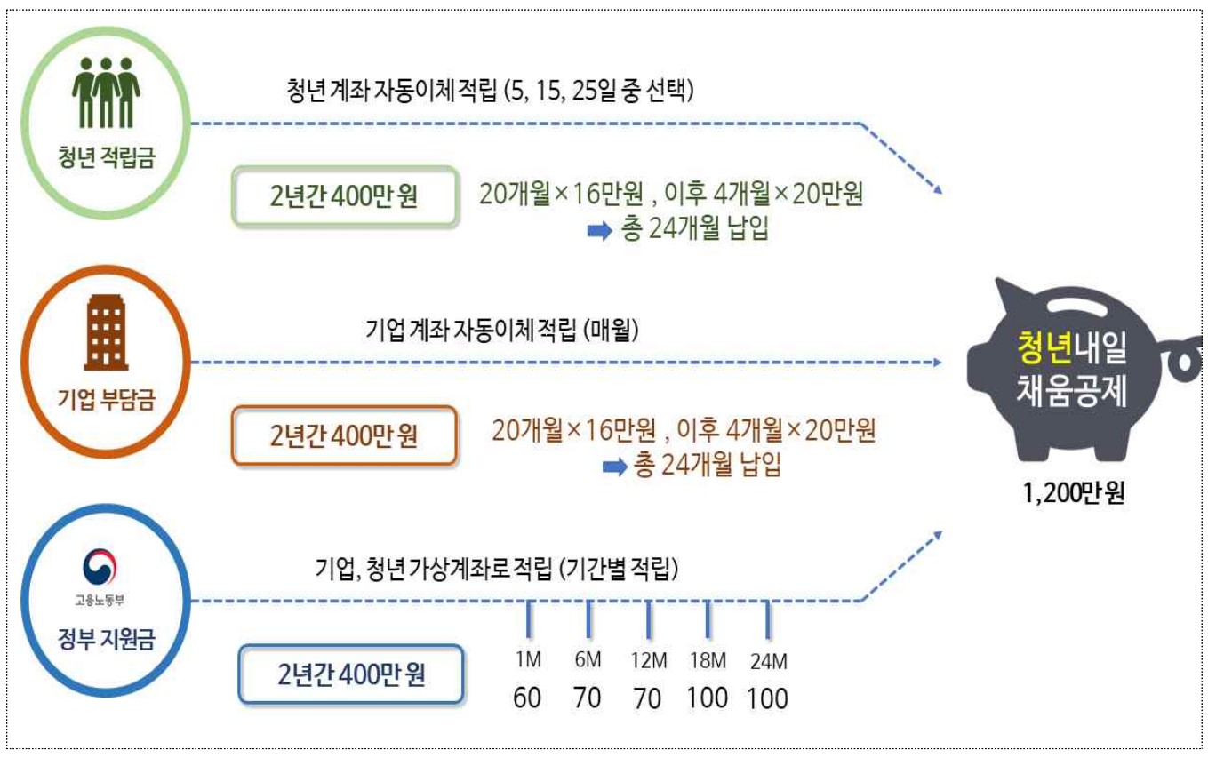 | 2년형 1,200만원 (1:1:1) 청년 400만원 ,기업 400만원, 정부 400만원 |
